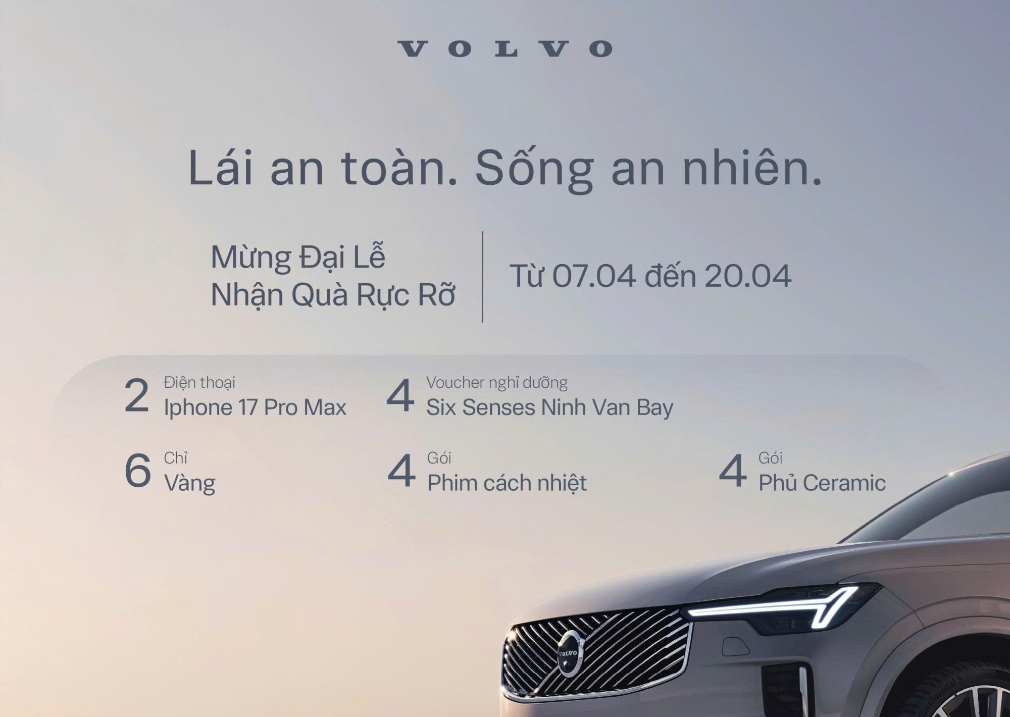 Mững lễ 30/4 - 1/5 Sở hữu Volvo nhận thêm cơ hội bốc thăm trúng thưởng các phần quà tặng giá trị: